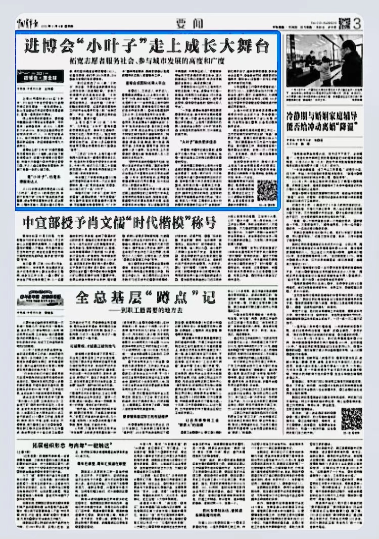 中国青年报头条:进博会东华“小叶子”走上成长大舞台